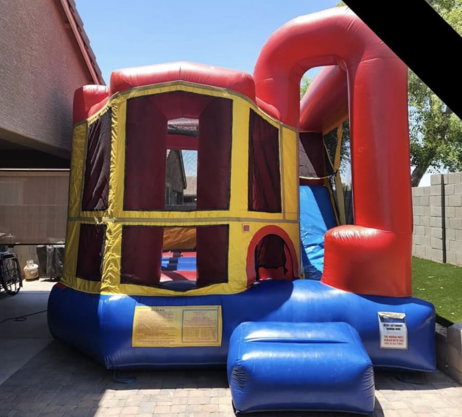 The Backyard Cobo offers interior jumping area and basketball hoop and pop-up obstacle. This