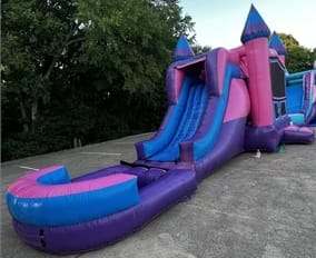 Girl combo is a 3in1 Bounce House combo. It's a 3-activity combo to entertain children of all ages. It allows kids several hours of healthy activities. Girl combo offers a basketball hoop to shoot a hoop before climbing up the stairs to slide down the awesome wet slide with a Pool at the end of the slide.